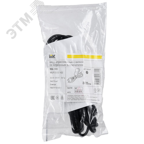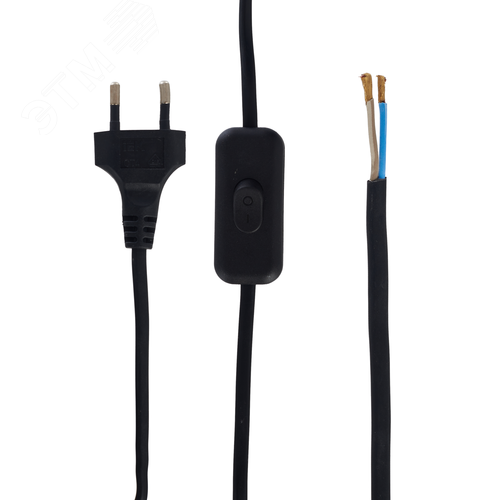Шнур УШ-1КВ с выключателем 2м ПВС 2х0.75 6А черный