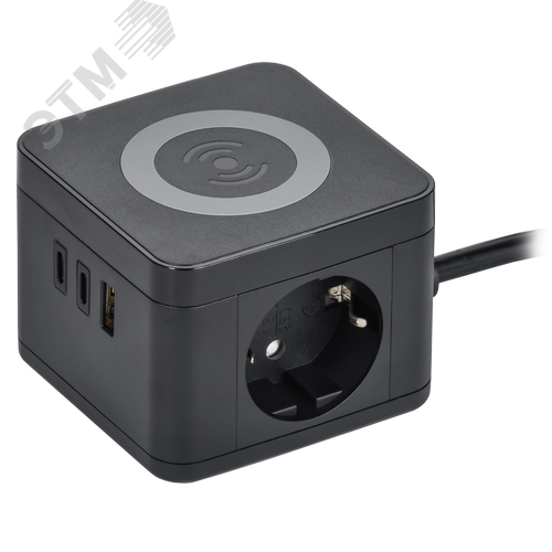 DOMINIC Удлинитель с беспроводной зарядкой 10Вт У02К 2 места 2P+PE 1,3м 3х1,0мм2 16А/250В USB A+C черный IEK