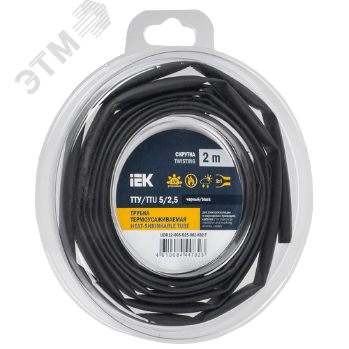 Трубка термоусадочная ТТУ нг-LS 5/2,5 черная (2м/упак) IEK