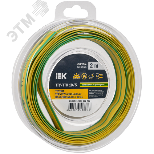 Трубка термоусадочная ТТУ нг-LS 10/5 желто-зеленая (2м/упак) IEK