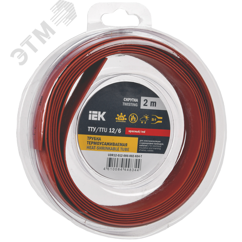 Трубка термоусадочная ТТУ нг-LS 12/6 красная (2м/упак) IEK