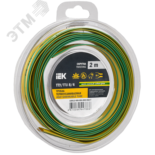 Трубка термоусадочная ТТУ нг-LS 8/4 желто-зеленая (2м/упак) IEK