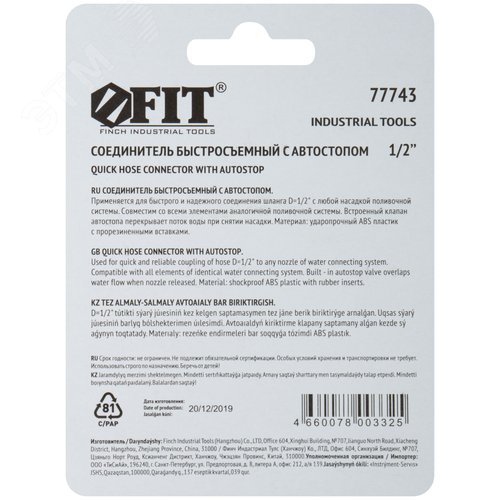 Соединитель двухкомпонентный с автостопом 1/2