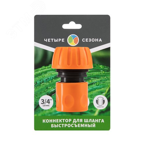 Коннектор для шланга, быстросъемный 3/4'' с аквастопом