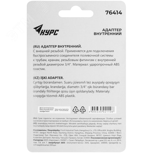 Адаптер внутренний пластиковый 3/4''