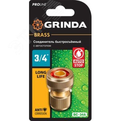 Соединитель быстросъёмный PROLine BC-34A для шланга, 3/4'', с автостопом, из латуни