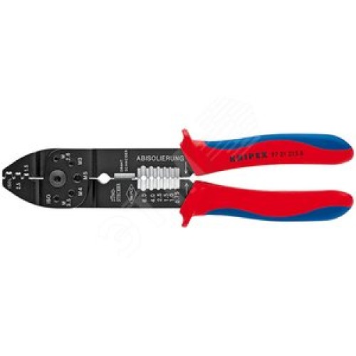 Пресс-клещи для резки и зачистки кабеля опрессовки кабельных наконечников и штекеров 3 гнезда обжим штекеров открытых неизолированныеованных (63 мм ширина): 05-25 мм (AWG 20 - 13) j рез медных и латунных шпилек: М26 3 35 4 и 5 L-230 мм чёрные 2-компонентн