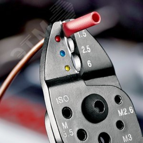 Пресс-клещи для резки и зачистки кабеля опрессовки кабельных наконечников и штекеров 3 гнезда обжим кабельных наконечников с изолятором и кабельных соединителей: 05-60 мм (AWG 20 - 10) j обжим кабельных наконечников без изолятора и кабельных соединителей: