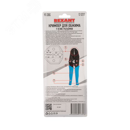 Кримпер для обжима F и BNC разъемов RG-59, RG-58, RG-62, RG-174, F.O.