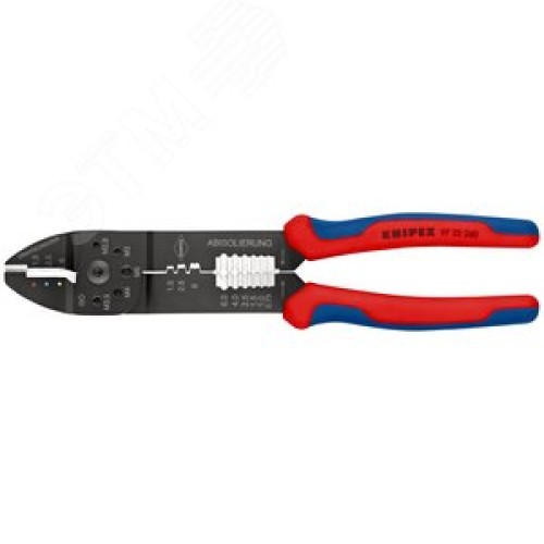 Пресс-клещи для резки и зачистки кабеля опрессовки кабельных наконечников и штекеров 3 гнезда обжим кабельных наконечников с изолятором и кабельных соединителей: 05-60 мм (AWG 20 - 10) j обжим штекеров открытых неизолированныеованных шириной 63 мм: 05 - 2