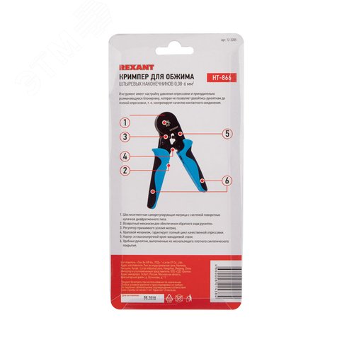 Кримпер HT-866 для обжима штыревых наконечников 0,08-6 мм2