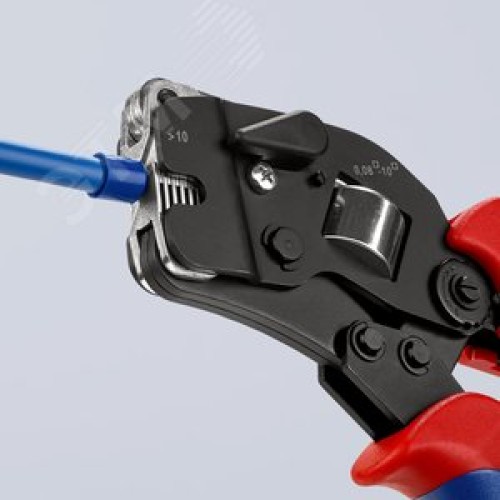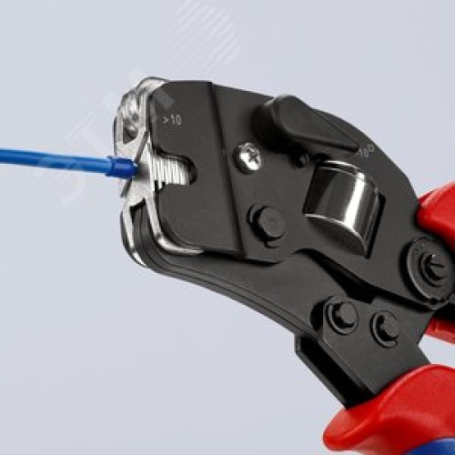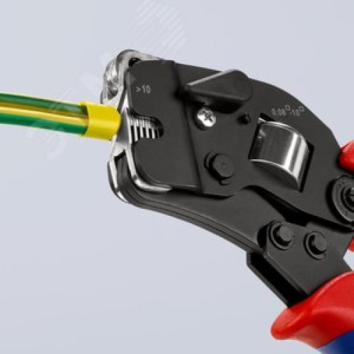 Дополнительная информация Для опрессовки контактных гильз (по стандарту DIN 46 228 часть 1 + 4). Для опрессовки электрических контактов, без применения пайки. Фронтальная установка контактных гильз в инструмент. Удобное использование благодаря саморегулировке по размеру гильз. С квадратной опрессовкой для создания оптимальных поверхностей контакта в клеммном соединении. Неизменно высокое качество опрессовки за счет принудительной блокировки (с отпиранием). Усилие опрессовки точно откалибровано изготовителем. Увеличение усилия резания благодаря рычажной передаче для работы без утомления. Продуманная конструкция и малый вес. Oпрессовка в диапазоне поперечных сечений 0,08 -10,0 мм2 и 16,0 мм2 в одной матрице. С рычагом выбора для установки диапазона опрессовки 0,08 - 10 или 16,0 мм2. Подходит для всех двойных концевых гильз сечением до 2 x 6 мм2 или 2 x AWG 8. CrV электросталь