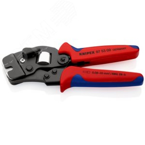 Пресс-клещи для контактных гильз квадратный обжим 1 гнездо гильзы контактные 008-10+16мм (AWG 28-5) двойные концевые гильзы до 2х6мм (2хAWG 8) L=190мм черные двухкомпонентные рукоятки