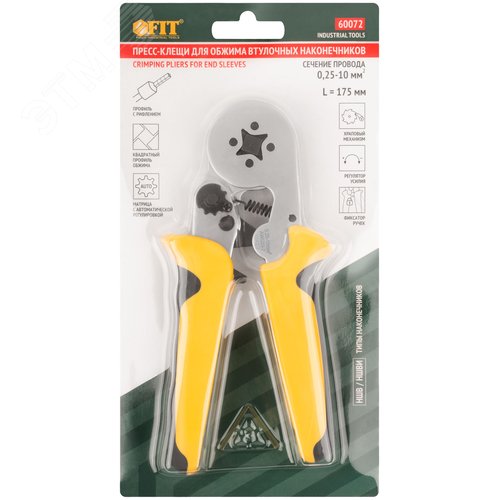 Пресс-клещи для обжима втулочных наконечников 0,25-10 мм, прорезиненные ручки 175 мм