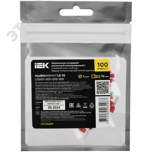 Наконечник НШВИ 1,0-10 темно-красный (100шт/упак) IEK