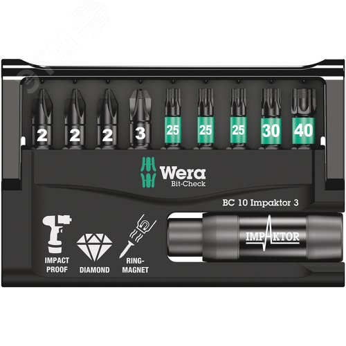 Набор ударных бит с битодержателем Bit-Check 10 Impaktor 3 10 предметов