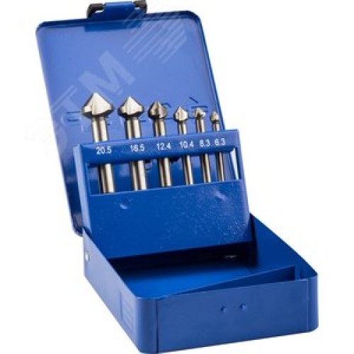 Комплектация зенкеры 6,3, 8,3, 10,4, 12,4, 16,5, 20,5 6 шт.
