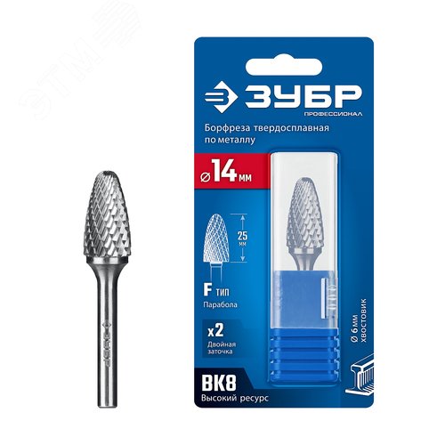 Борфреза твердосплавная, ПРОФЕССИОНАЛ тип F парабола с закругленным углом, радиус 3.5 мм, 14х25 мм, хвостовик 6 мм