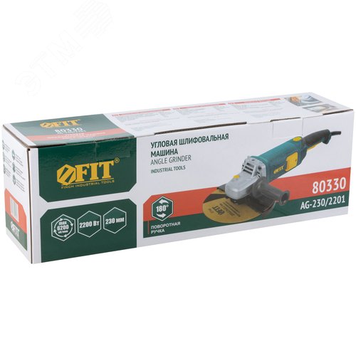 Шлифмашина угловая 2200 Вт,6200 об/мин,КлК 230 мм,4,6 кг,б/с щеток,рез.накл.,плав.пуск,повор.,коробка