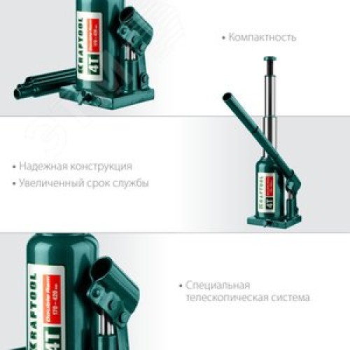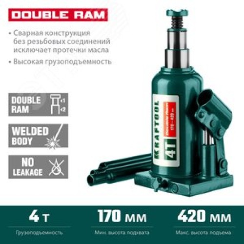 Двухштоковый бутылочный домкрат с увеличенным подъемом DOUBLE RAM 4т 170-420мм