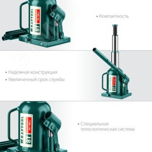 Двухштоковый бутылочный домкрат с увеличенным подъемом DOUBLE RAM 8т 170-430мм