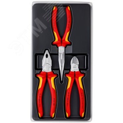 Набор ШГИ VDE 1000V в ложементе 3 предмета комплектация, 0306180 плоскогубцы 180 мм 2616200 длинногубцы 200 мм 7006160 бокорезы 160 мм диэлектрические