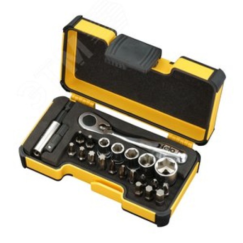 Набор бит PZ/PH/TX/HEX и головок с мини трещоткой в кейсе, 23 шт