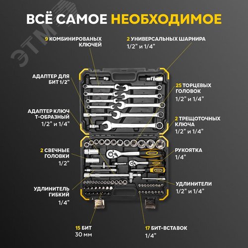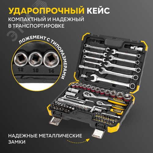 Набор инструментов, 1/2, 1/4, CrV, пластиковый кейс, 82 предмета