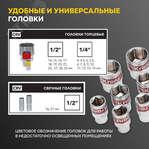 Комплектация головки торцевые 1/4'' 4, 4.5, 5, 5.5, 6, 7, 8, 9, 10, 11, 12, 13, 14 мм