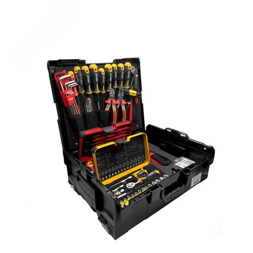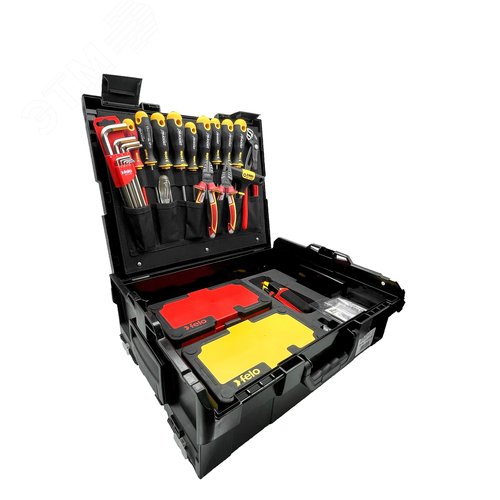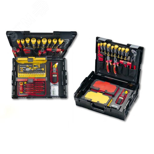 Комплектация Отвертки: SL 4,0 / 5,5 / 6,5 / PZ 1 / PZ 2 / Torx15 / Torx20 / Torx25, Отвертка VDE E-Slim SL 3,5, Отвертка-тестер сети SL 3,0 x 70, T-образная отвертка под биты 1/4'', VDE пассатижи180 мм, VDE бокорезы 160 мм, Тестер сети для ШГИ, Клещи переставные 250 мм, Набор шестигранных Г-образных ключей, 9 шт - 1,5/2,0/ 2,5/3,0/4,0/5,0/6,0/8,0/10,0мм, Кейс с диэлектрическим инструментом E-SMART (рукояткаE-SMART со сменными стержнями), Кейс с битами 25мм и мм головками, трещоткой и рукояткой ERGONIC, 36 предм., Чемодан с ручкой, пластиковый.