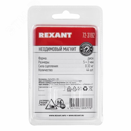 Неодимовый магнит диск 5х2мм сцепление 0.32 кг (упак - 44 шт.)