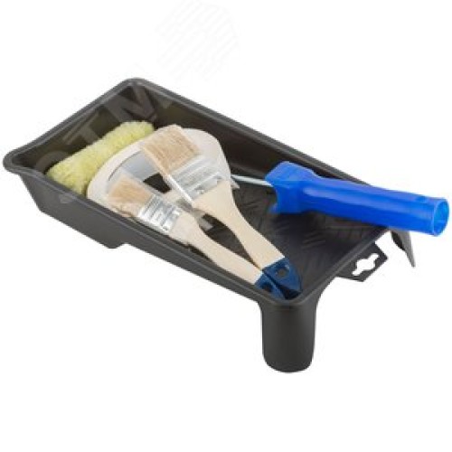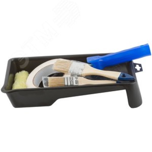 Набор для покраски дверей и окон (ванночка 290х150 мм + валик полиакрил 100 мм + малярная лента 25 мм x 50 м + кисти 25 , 38 мм)