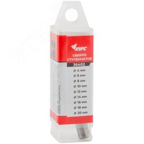 Сверло ступенчатое HSS по металлу, 9 ступеней, 4-20 мм