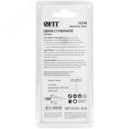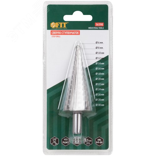 Сверло ступенчатое HSS (Р6М5) по металлу, 13 ступеней, 6-30 мм