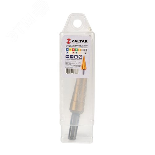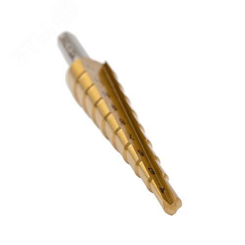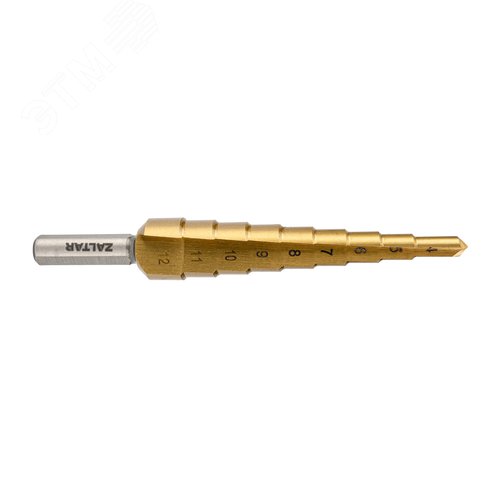 Сверло ступенчатое, HSS TiN, Gr.1, 4-12 мм, прямая канавка, трехплоскостной хвостовик