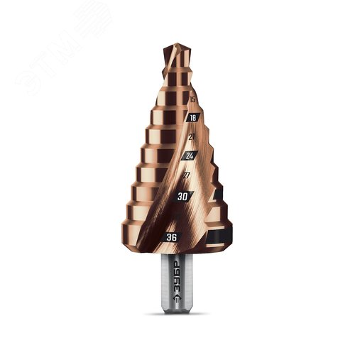 Сверло ступенчатое, винтовая проточка, КОБАЛЬТ 9-36мм, 10 ступеней, ПРОФЕССИОНАЛ