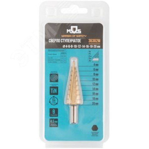 Сверло ступенчатое HSS по металлу, 9 ступеней, 4-20 мм
