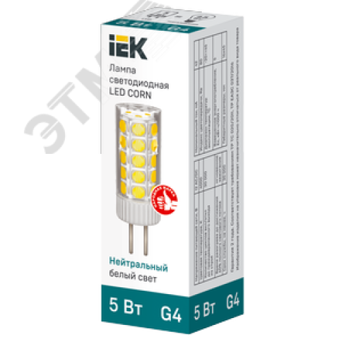 Лампа светодиодная CORN капсула 5Вт 12В 4000К керамика G4