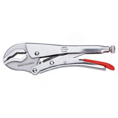 Зажим для тяжёлых условий работы губки с двойной выемкой для круглого секционного и плоского материала размеры под круг 36 мм под квадрат 36 мм под ключ 36 мм L-250 мм оцинкованный