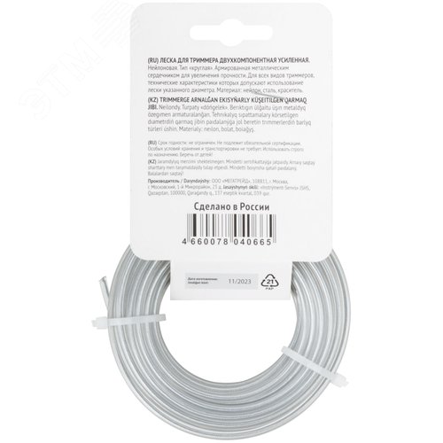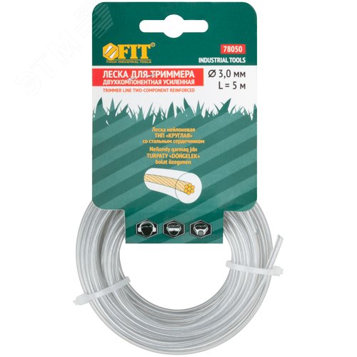Леска для садовых триммеров армированная, металлический сердечник, Круглая 3,0 мм х 5 м