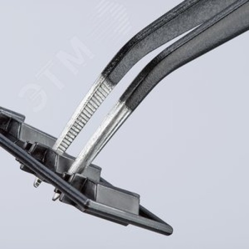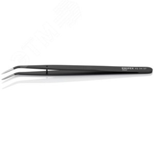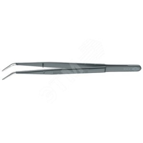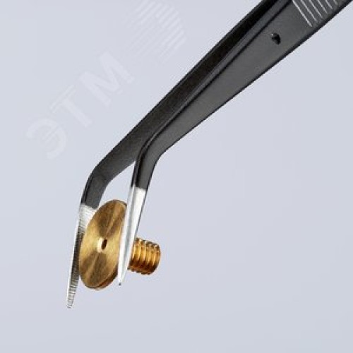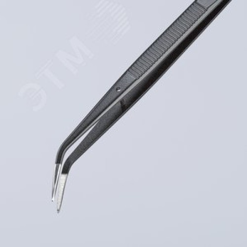 Пинцет захватный прецизионный с направляющим штифтом тонкие зазубренные губки под 45° L-155 мм пружинная сталь чёрная матовая лакировка