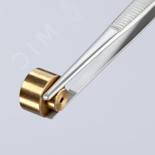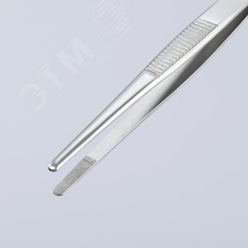 Пинцет захватный прецизионный закруглённые зазубренные губки шириной 2 мм пружинная сталь хромированный L-120 мм