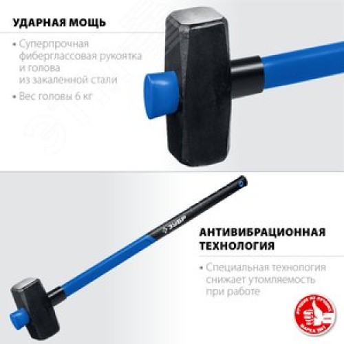 Кувалда с фиберглассовой удлинённой рукояткой Профессионал 6 кг