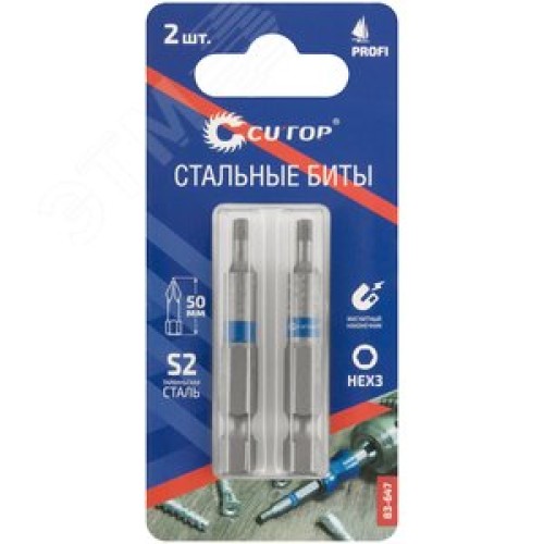 Биты стальные, 2 шт., Profi, HEX3, 50 мм
