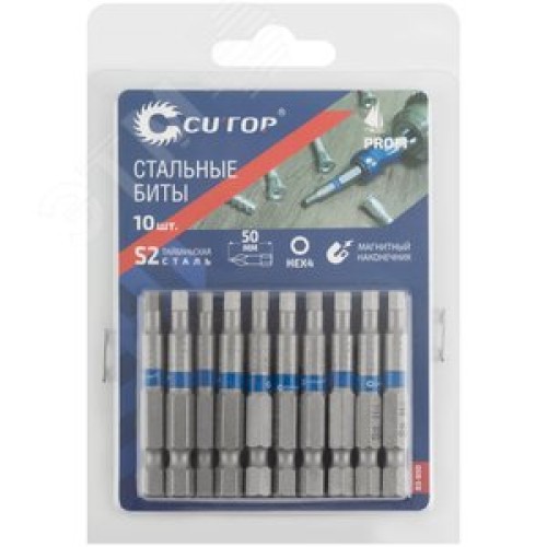 Биты стальные, 10 шт., Profi, HEX4, 50 мм