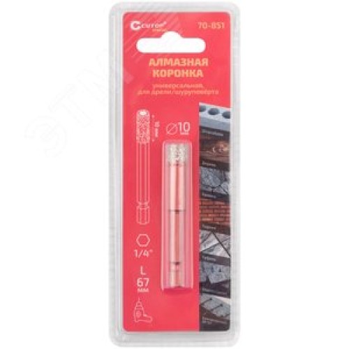 Коронка алмазная универсальная Special, шестигранный хвостовик 1/4'', 10X10x67 мм