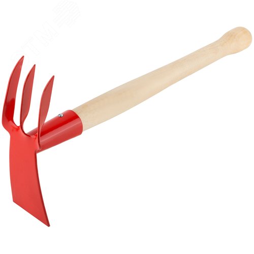 Мотыжка комбинированная с деревянной ручкой, 3 витых зуба, профиль трапеция