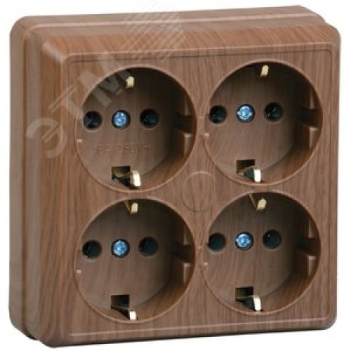 OKTAVA Розетка 4-местная с заземлением для открытой установки 16А РС24-3-ОД дуб GENERICA
