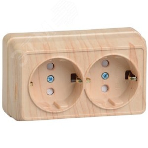 OKTAVA Розетка 2-местная с заземлением с защитными шторками для открытой установки 16А РСш22-3-ОС сосна GENERICA