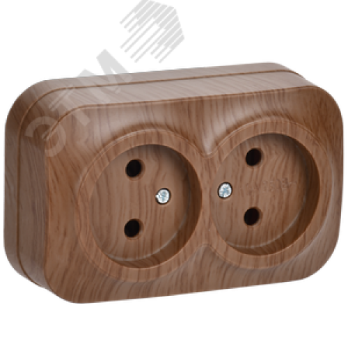 GLORY Розетка двухместная наружная без заземления дуб